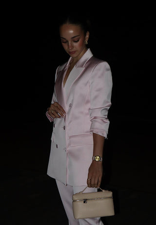 A refined palette of pink expressed through modern silhouettes. Dresses, tailoring and luxe separates for celebrations and special occasions.