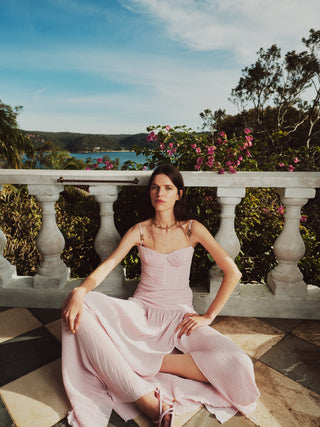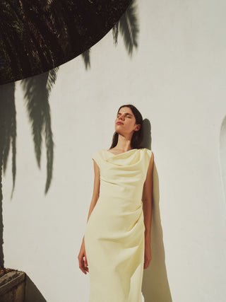 Whether you're heading to a museum in the morning or a rooftop dinner by night, the Double Time Pleat Dress brings movement, elegance and endless styling potential. The structured pleats and sculptural silhouette are designed for both comfort and style, perfect for long summer days that evolve into glamorous evenings.