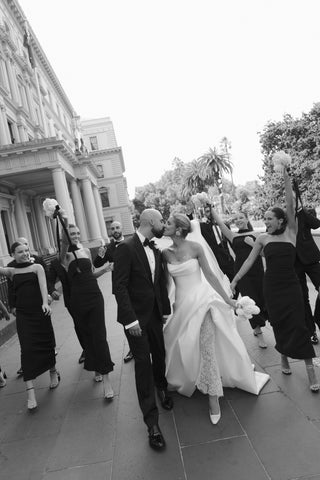 They were obsessed with it from the moment they tried it on at the Armadale Styling Suite. It was almost an instant “yes” for everyone. I had a mix of body types — one of my bridesmaids was postpartum, another was pregnant, one is super tall, and a few are quite petite — and the dress looked incredible on all of them. It brought everyone together while still allowing each girl to feel like herself.