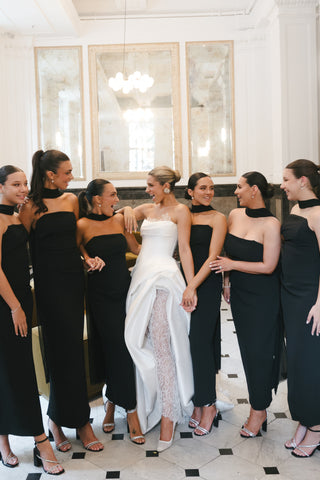 When it comes to styling, few do it quite like friends of MANNING CARTELL and creative tastemaker Maxine Wylde. With her signature blend of modern glamour and effortless elegance, Maxine brought her stylistic eye and thoughtful touch to every detail of her wedding day — especially when it came to dressing her Bridal party. In this exclusive editorial, Maxine shares the inspiration behind the look, the emotions that unfolded, and the unforgettable energy her bridesmaids radiated in their Fast Forward Strapless Dresses. From the moment of their first try-on to the walk down the aisle, it’s a story of style, sisterhood, and timeless sophistication.