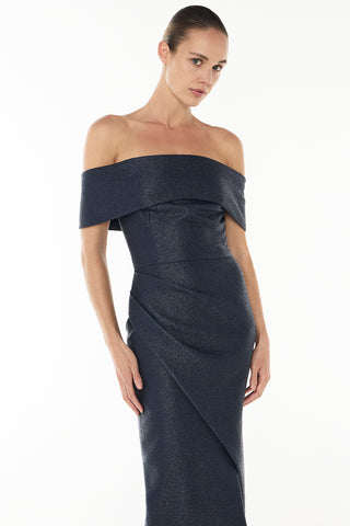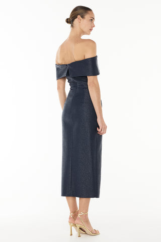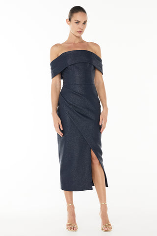 Back by popular demand! The Micro Weave Off-Shoulder Dress is crafted from luxe-coated raffia and is designed for the modern woman to wear at weddings, formalities and graduations. The strapless midi dress features an ultra-flattering ruched skirt with a cutaway split to elongate the legs and accentuate the female form. Pair yours back with barely there heels for a minimal look.