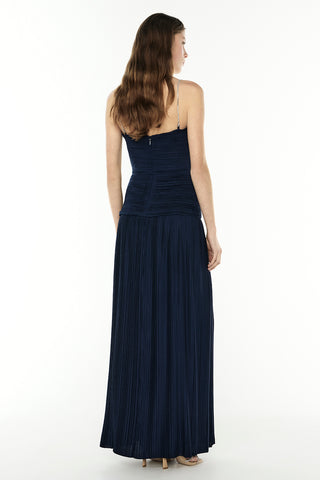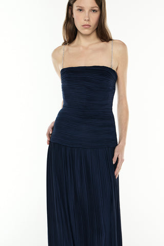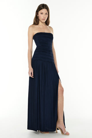 Elevate your style with the Royal Debut Dress. A sleek, strapless design flows into a graceful maxi skirt, while subtle pleats and a side split add effortless elegance. Complete with diamante removable straps, this versatile piece lets you customise your look, ensuring you turn heads at any occasion.