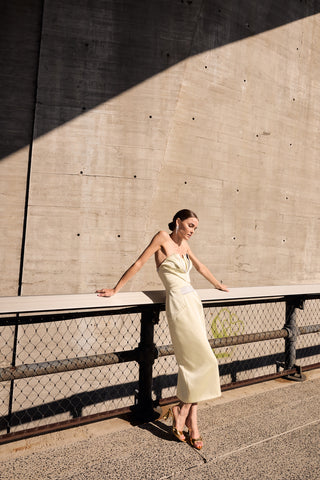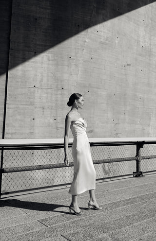 This season, we reintroduce the silhouette with updated fabrications that speak to today’s sensibility, ensuring the design feels both contemporary and timeless. With its sculptural bodice and luxurious colour palette that exudes refined sophistication, the Stories We Tell Dress is for the woman who wants to make a statement while remaining true to herself.