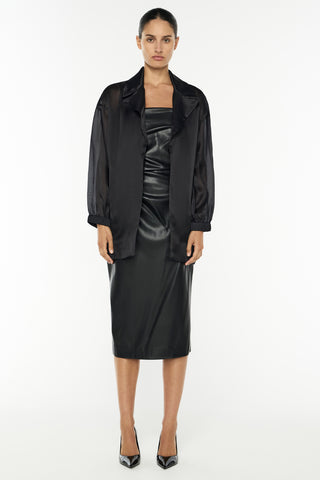 The Organza Bomber is the ultimate layering piece, blending effortless style with versatility. Crafted from luxurious silk organza, it features classic bomber jacket detailing, elasticated cuffs and hem, and an optional waist tie for a customizable fit. Perfect for adding a touch of sophistication to any look.